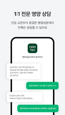 바쁜 일상 속에서도 건강을 꾸준히 챙길 수 있도록 에스더팩은 자동 정기 배송 서비스를 통해 당신의 문 앞까지 필요한 영양제를 정확히 전달합니다. 깜빡 잊을 걱정 없이 규칙적인 섭취 습관을 유지할 수 있죠. 나아가, 영양 성분에 대한 궁금증부터 개인적인 건강 고민까지, 언제든 에스더포뮬러의 전문 영양 상담사와 1:1로 소통할 수 있는 기회를 제공합니다. 전화 또는 채팅을 통해 믿을 수 있는 조언과 함께 최적의 건강 방향을 찾을 수 있습니다.