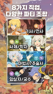 80여 개가 넘는 광활한 대륙들을 가로지르며 각기 다른 테마의 신비로운 풍경을 발견해보세요. 강력한 보스들이 대륙 곳곳을 수호하며 여러분의 전략적인 도전을 기다립니다. "고고! 스카이"에서는 탱커, 딜러, 힐러, 궁수, 마법사 등 8가지 개성 넘치는 직업 중 원하는 역할을 선택하여 나만의 최강 파티를 꾸릴 수 있습니다. 지혜로운 조합과 명확한 역할 분담은 단순한 자동 전투를 넘어선 깊이 있는 전략적 재미를 선사하며, 어떤 위협도 극복할 수 있는 힘을 부여할 것입니다.