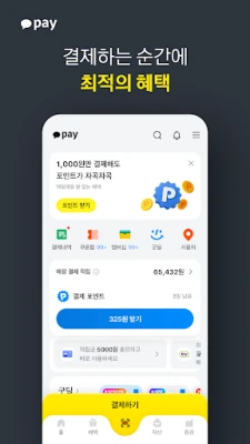 일상 속 모든 금융을 간편하게 연결하는 지혜로운 동반자, 카카오페이와 함께 새로운 금융 경험을 시작해 보세요. 어떤 앱을 사용 중이든, 단 두 번의 탭으로 결제 화면이 펼쳐져 빠르고 유연한 소비를 지원합니다. 맞춤형 혜택부터 멤버십 적립, 기한 임박 쿠폰까지 스마트하게 관리하며, 삼성페이나 제로페이 가맹점에서도 제약 없이 카카오페이를 사용할 수 있습니다. 생체 인증의 편리함과 바코드/QR코드의 범용성은 물론, Wear OS 기기를 통한 오프라인 결제까지, 당신의 지갑을 더욱 가볍고 편리하게 만들어 드립니다.
