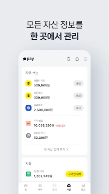 마음 놓고 금융하다, 카카오페이. 간편한 결제부터 자산, 증권, 보험 관리까지 카카오페이 하나로 모든 금융 활동을 편리하고 안전하게 이용하세요. 당신의 스마트한 금융 생활을 지원합니다.