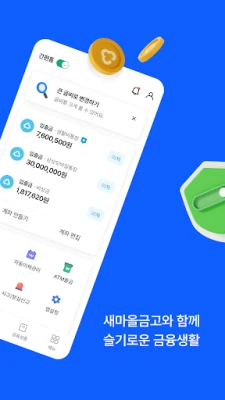 전국 1,300여 개 새마을금고가 선사하는 높은 금리의 예적금 상품과 특별한 우대이율 쿠폰을 하나의 앱에서 만나보세요. 비과세 출자금과 세금우대 예적금을 통해 현명하게 절세 혜택을 누릴 수 있습니다. 자유로운 입출금에 높은 이율까지 더해진 '더드림박스'는 물론, 번거로운 지점 방문 없이 모바일로 간편하게 대출을 신청하고, 자녀의 든든한 미래를 위한 '우리 아이 금융생활' 서비스까지 폭넓은 금융 선택지를 제공합니다.