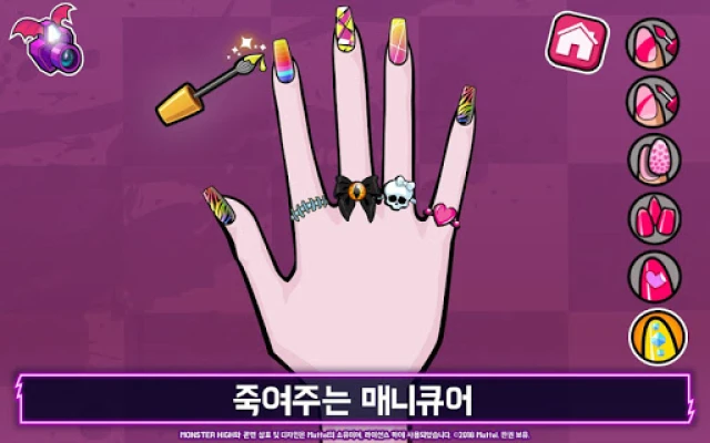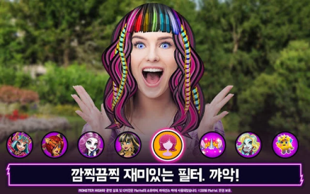 놀라운 변신은 여기서 끝나지 않습니다! 여러분 스스로도 몬스터 하이의 일원이 될 수 있는 기회, 바로 특별한 셀카 필터가 준비되어 있어요. 몬스터로 변신하거나 좀비처럼 춤추는 자신을 발견하고, 나만의 뱀파이어 필터를 직접 만들어 보세요. 완성된 작품은 다른 친구들에게 자랑하고 덜덜그램에 공유하며 여러분의 어마무시한 패셔니스타 감각을 널리 보여줄 수 있습니다. 또한, 발톱 같은 손톱과 완벽한 반지를 고르고, 몬스터들에게 매니큐어를 입혀 마지막 디테일까지 완벽하게 꾸며 줄 수 있어요. 드라큘라우라™를 위한 반짝이는 보석이나 클레오 드 나일™을 위한 톡톡 튀는 귀걸이, 심지어 삐죽삐죽한 목걸이까지, 모든 액세서리가 준비되어 있답니다.
