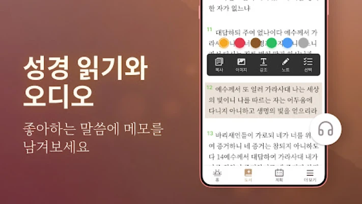 차별화된 오프라인 성경 학습 앱으로 혼자서도, 스터디 그룹과도 함께 성경을 깊이 탐구하세요. 모바일에서 E-성경을 편리하게 읽고, 운전이나 운동 중에도 오디오 말씀을 들으며, 퀴즈와 크로스워드 퍼즐로 신앙을 즐겁게 키울 수 있습니다.